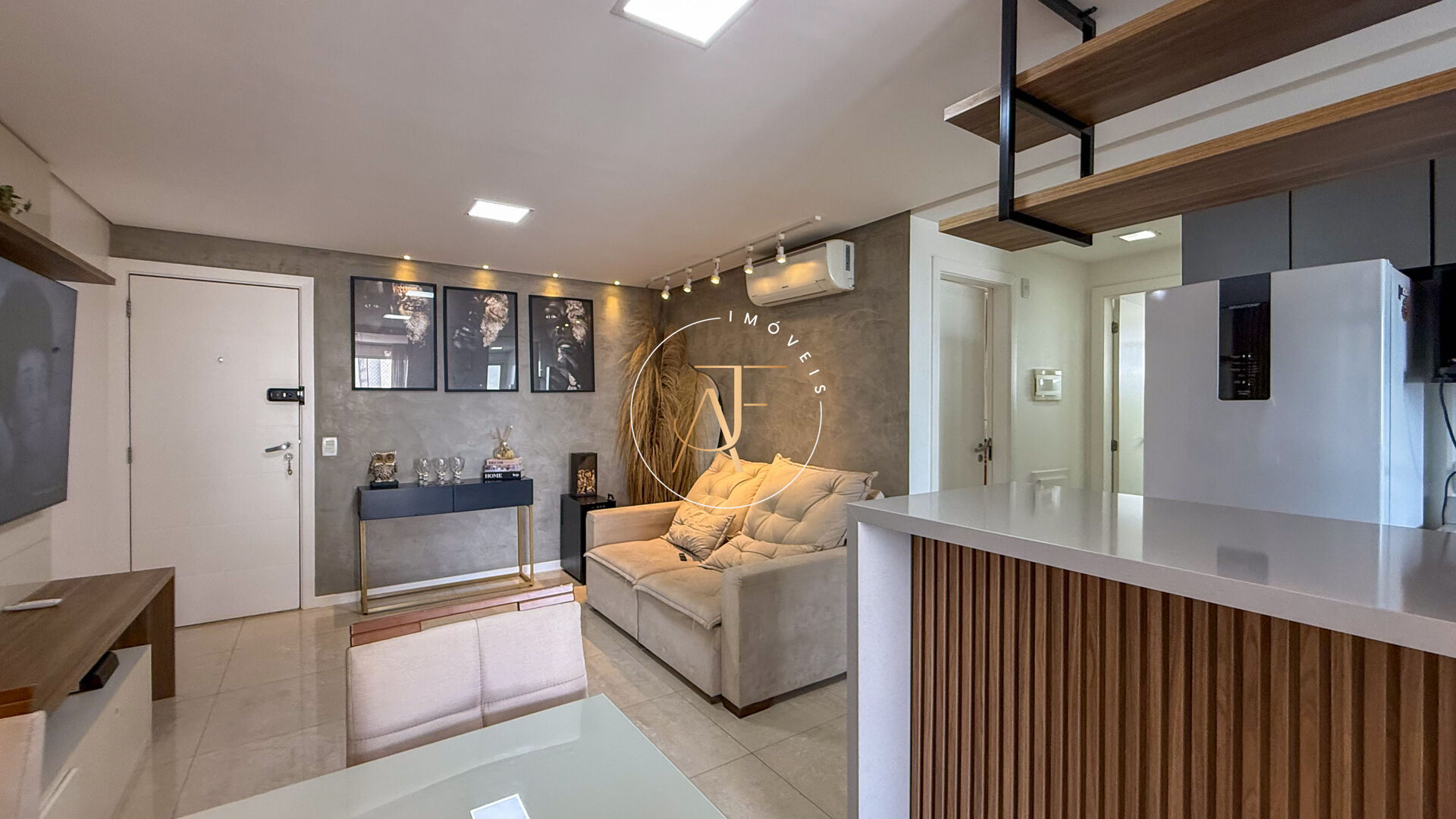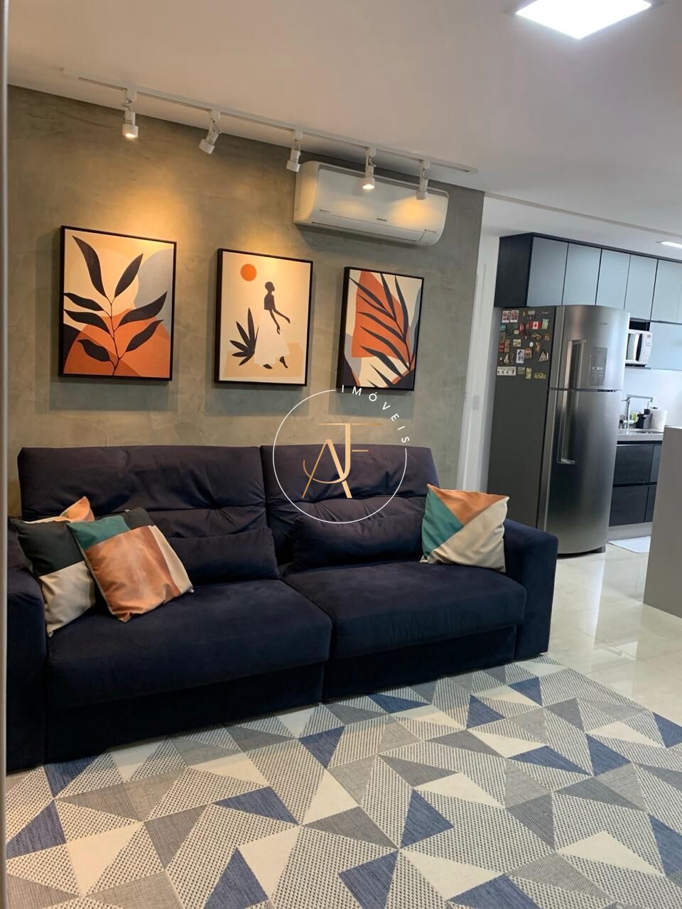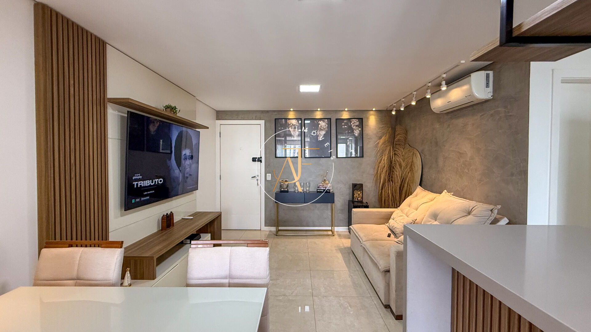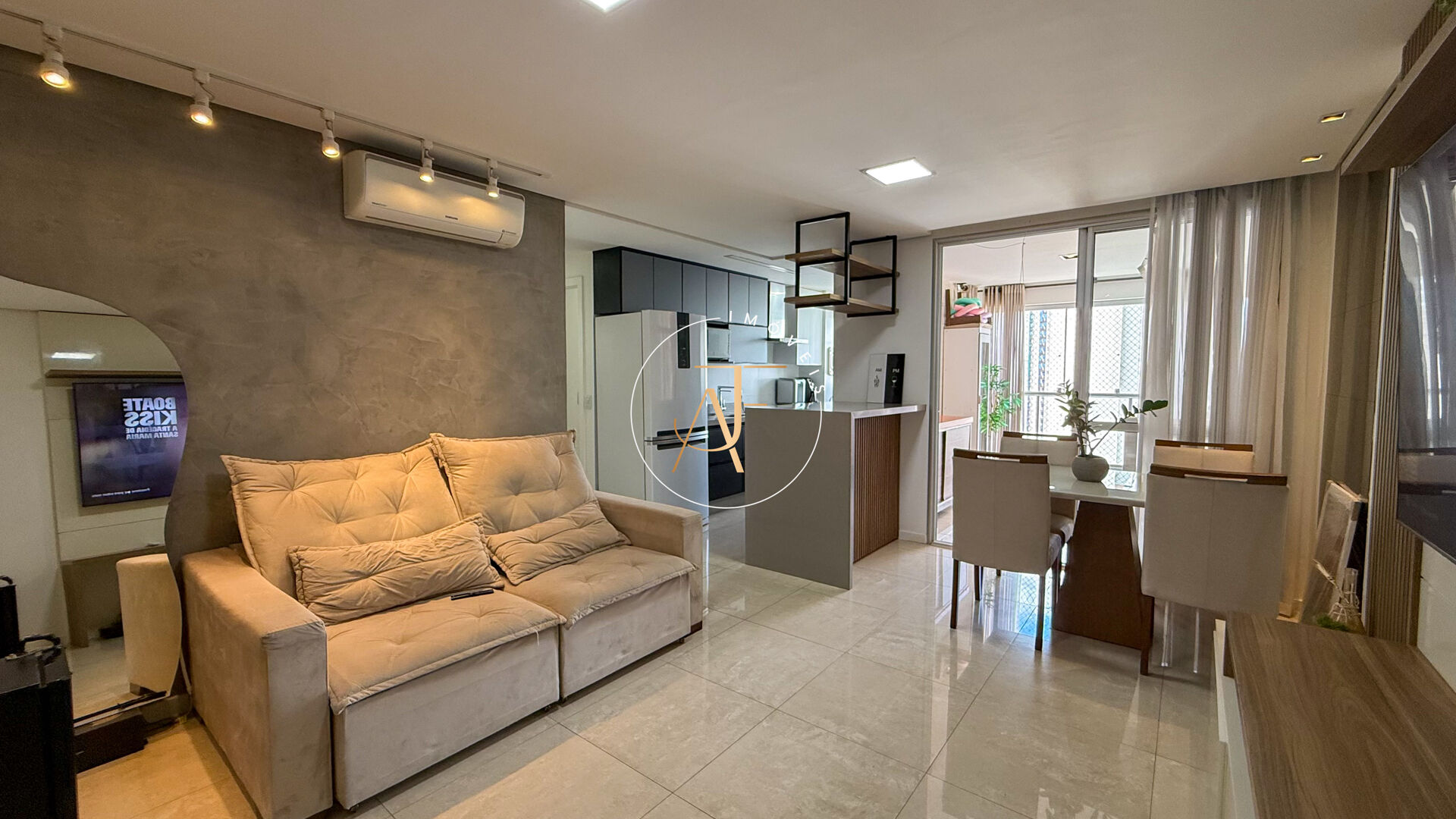 Sala ampla em 2 ambientes , ar-condicionado na sala, projeto de iluminação